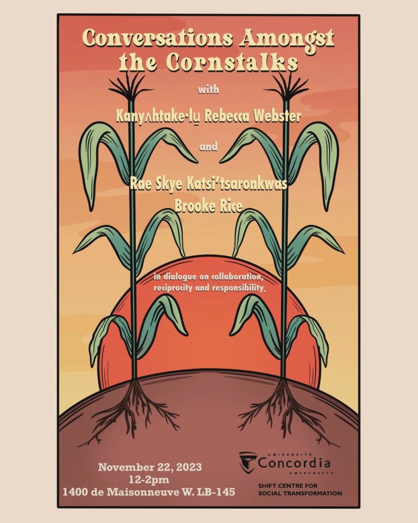 The above poster and background of the guest speakers was taken directly from the promotional page for the event, please click here if you wish to have more info: https://www.concordia.ca/cuevents/offices/provost/shift/2023/12/22/conversations-amongst-the-cornstalks.html