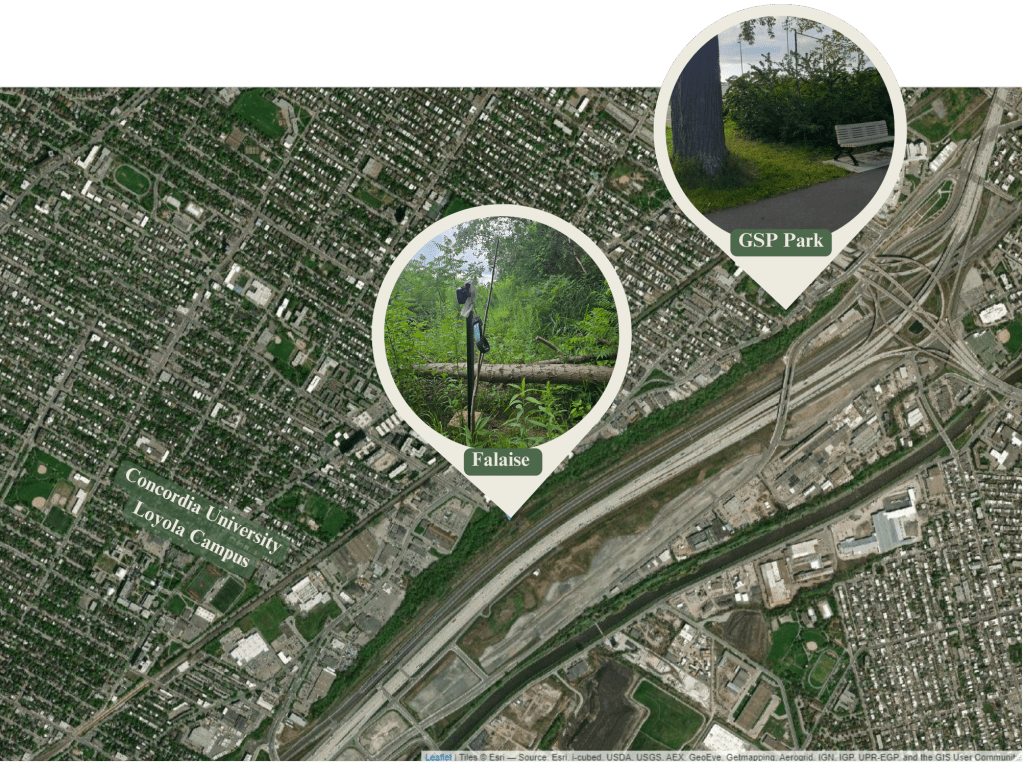 Parc George-Saint-Pierre is a formal urban park in Montreal, with manicured lawns, sports facilities, and higher levels of human activity. While it may seem less hospitable to wildlife at first glance, this park still offers valuable habitat for adaptable species. Studying this site allowed for a comparison between structured park environments and more naturalized greenspaces like the Falaise Saint-Jacques.